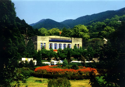 廬山會(huì)議舊址位于牯嶺東谷擲筆峰麓。原是蔣介石在廬山創(chuàng)辦軍官訓(xùn)練團(tuán)的三大建筑之一,于1937年落成,名廬山大禮堂。解放后改名“人民劇院”。1959年中國(guó)共產(chǎn)黨八屆八中全會(huì),1961年中央工作會(huì)議和1970年九屆二中全會(huì)均在此召開。毛澤東同志主持了這三次重要會(huì)議,F(xiàn)在,這里已辟為廬山會(huì)議紀(jì)念館。里面保存著當(dāng)年許多珍貴的實(shí)物、照片、材料和根據(jù)紀(jì)錄片制作的錄相片,供游人觀看。 右側(cè)不遠(yuǎn)處的“廬山大廈”為外觀4層、內(nèi)有6層的鋼筋水泥建筑,原為國(guó)民黨軍官訓(xùn)練團(tuán)的中下級(jí)軍官住所,正面額上原有蔣介石題寫的“廬山傳習(xí)學(xué)舍”四個(gè)大字。位于會(huì)址和大廈中間的一座宮殿式建筑即為1935年落成的廬山圖書館。