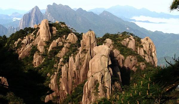 三清山:坐落于江西省東部門戶上饒市玉山縣與上饒德興市交接處。因玉京、玉虛、玉華“三峰峻拔,如三清列坐其巔”而得名。風(fēng)景區(qū)總面積229平方公里,最高峰玉京峰海拔1819.9米,為懷玉山脈的主峰。懷玉山因“天帝遺玉、山神藏焉”,風(fēng)光無限,別具精神而得名。三清山集天地之秀,納百川之靈,是華夏大地一朵風(fēng)景奇葩。她兼具“泰山之雄偉、黃山之奇秀、華山之險(xiǎn)峻、衡山之煙云、青城之清幽”,被國際風(fēng)景名家譽(yù)之為:“世界精品、人類瑰寶、精神玉境”。她以梯云嶺、南清園、萬壽園、西海岸、玉京峰、陽光海岸、三清宮、玉零觀等十大景區(qū)引人入勝。山的東南麓水連三清湖,山光水色,溶洞奇石,美不勝收。1988年8月列為國家重點(diǎn)風(fēng)景名勝區(qū),2008年7月列為世界自然遺產(chǎn)地,F(xiàn)為國家5A級風(fēng)景旅游區(qū)、國家自然遺產(chǎn)、國家地質(zhì)公園、全國愛國主義教育示范基地和全國文明風(fēng)景旅游區(qū)示范點(diǎn)。