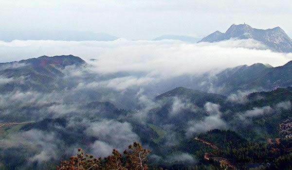 五府山:位于上饒縣南部,武夷山北麓。地處亞熱帶,氣候溫暖,雨量充沛,年平均氣溫在14—18℃之間,年平均降雨量在1880毫米,相對(duì)濕度為84%,一年無(wú)霜期為235天。五府山上的五府崗為上饒縣的最高峰。因其在月明風(fēng)清之夜,臨崗遠(yuǎn)眺,舊制的江西“廣信府”、“饒州府”、浙江“衢州府”、福建“建陽(yáng)府”、“南平府”等“五府萬(wàn)家燈火盡收眼底”,五府山因此而得名。