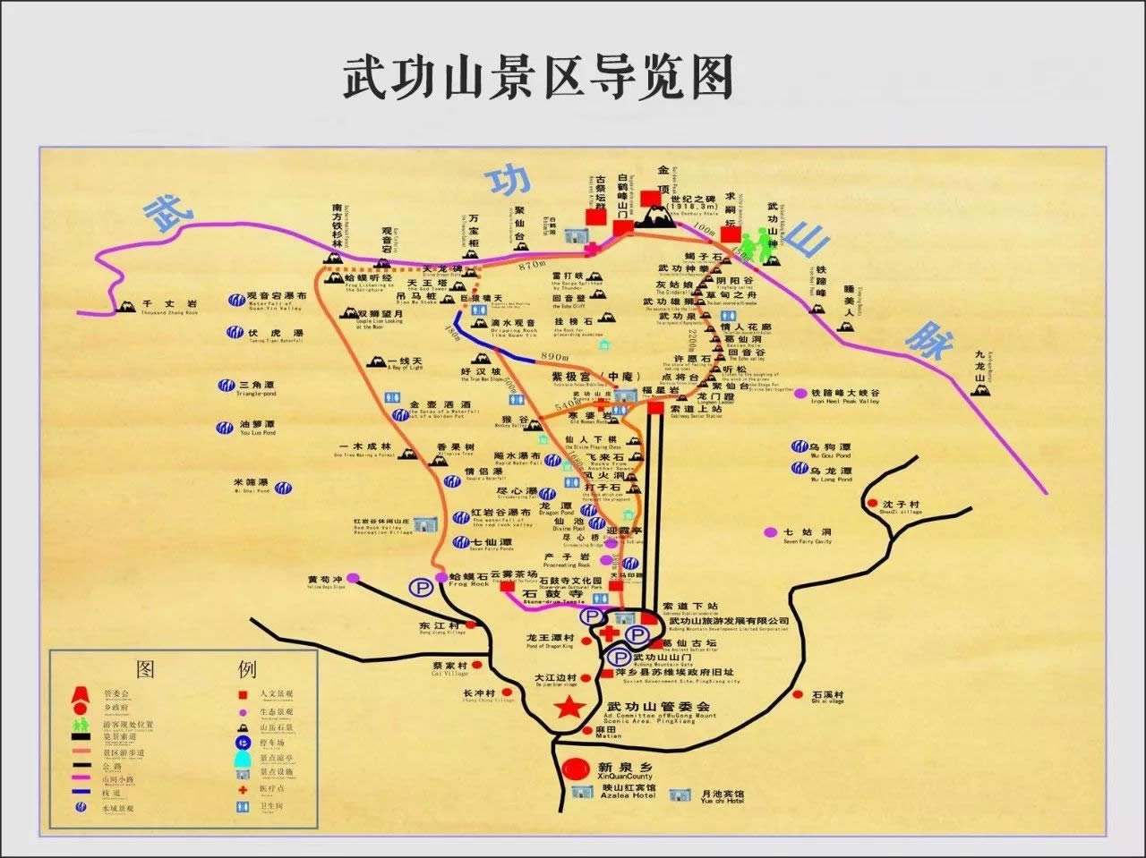 一級(jí)景點(diǎn):睡美人、金壺灑酒、夫妻瀑、米篩潭、金頂日出、武功山云海。