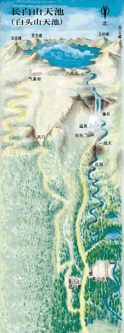 長(zhǎng)白山天池是中國(guó)境內(nèi)保存最為完整的新生代多成因復(fù)合火山,天池在宋朝以后多有噴發(fā),清光緒三十四年(1908年)起,劉建封登上白云山,為天池十六峰命名,探明鴨綠、松花、圖們?nèi)戳鳌L斐刂車鹕娇诒诙盖,并形成十幾座環(huán)狀山山峰,海拔均在2500米以上,長(zhǎng)白山天池也是松花江、鴨綠江以及圖們江的發(fā)源地,素有“三江之源”的雅稱。