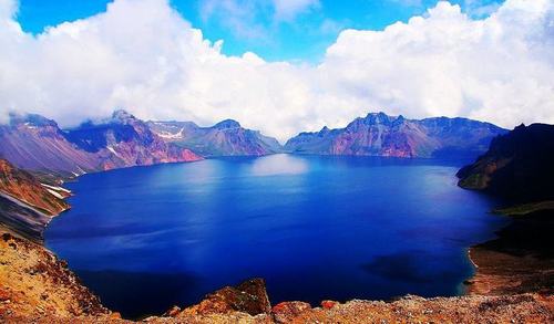 長(zhǎng)白山天池,又稱白頭山天池,坐落在吉林省東南部長(zhǎng)白山自然保護(hù)區(qū)內(nèi),是中國(guó)和朝鮮的界湖,雙方各擁有一部分水域。天池南北長(zhǎng)約4400米,東西寬約3370米,其池水的海拔高度為2189.1米,最深處為373米,平均204米,水面面積9.82平方千米,周長(zhǎng)13.1千米。據(jù)《長(zhǎng)白山江岡志略》記載:“天池在長(zhǎng)白山巔的中心點(diǎn),群峰環(huán)抱,離地高約20余里,故名為天池。”