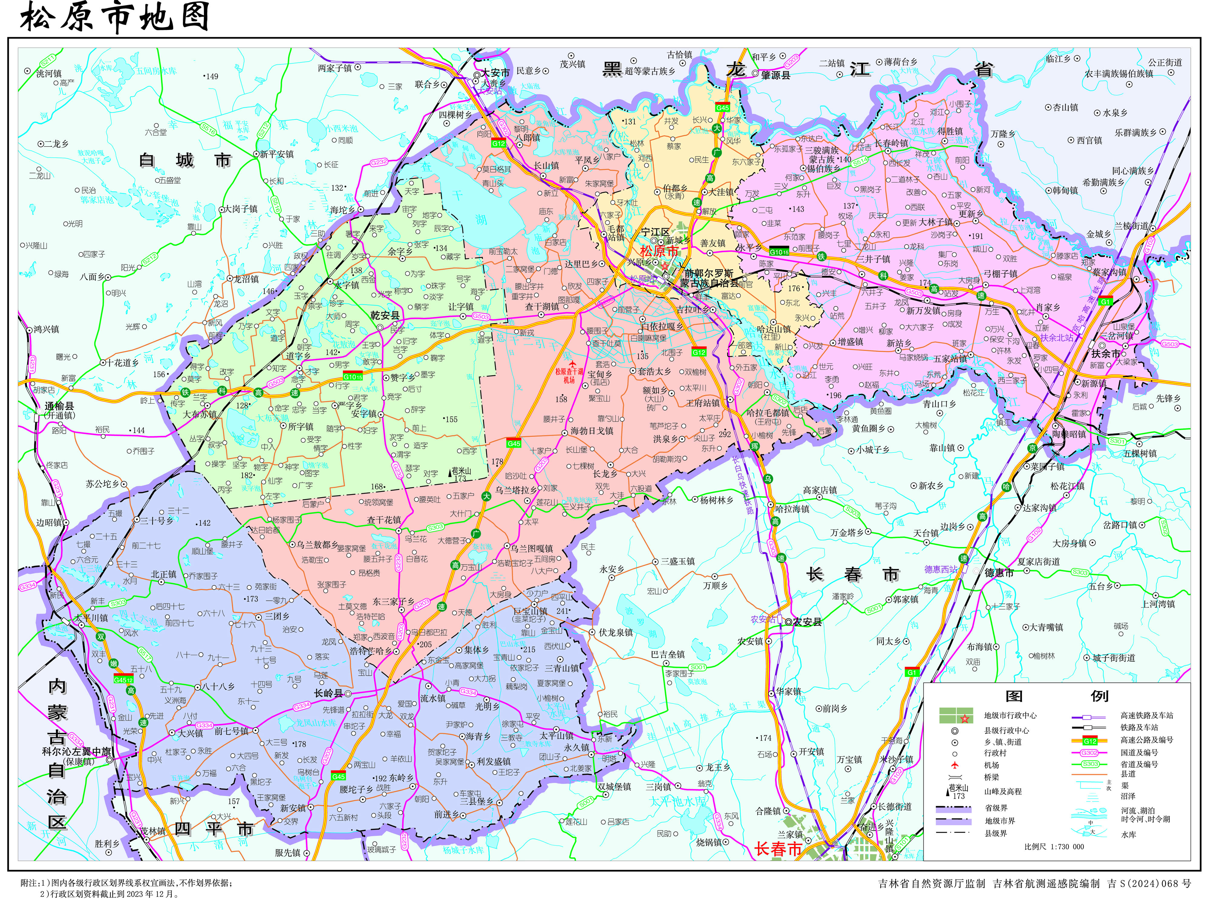 松原市轄1個(gè)市轄區(qū)、2個(gè)縣、1個(gè)自治縣,代管1個(gè)縣級(jí)市: