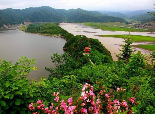 防川風(fēng)景名勝區(qū),位于吉林省延邊朝鮮族自治州琿春市敬信鎮(zhèn)防川村,處于中朝和朝俄界河圖們江的日本海入海口,即中朝俄交界的鼎足地帶。風(fēng)景區(qū)南北長(zhǎng)8000米,東西寬2150米,面積為20平方千米。