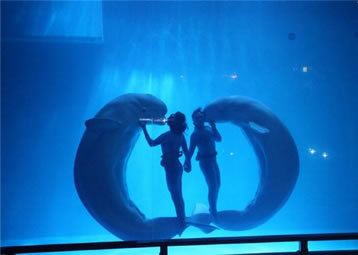 水下表演場,白鯨水下表演,震撼演繹海底白鯨騎士、水下華爾茲、深海之吻,極限挑戰(zhàn)人鯨水下大回環(huán)、1080°同步轉(zhuǎn)體等極具創(chuàng)意與難度的表演動作,帶給你前所未有的視聽震撼!
