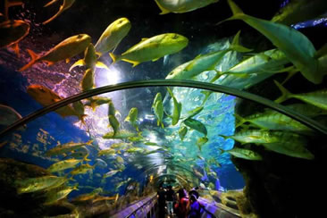 走進中國第一座海底通道,體驗第一次置身海底的感動。漫步在波光粼粼的幽藍海底,300余種、近萬尾海洋生靈觸手可及;遭遇大鯊魚遮天蔽日,欣賞炫彩巖礁光彩奪目,傾聽斷壁殘垣訴說昔日繁華;握緊她/他的手,一起走過這118米的奇幻之旅,共同游歷傳說中的亞特蘭蒂斯。