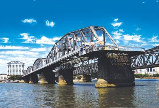 鴨綠江斷橋?yàn)轼喚G江上諸多橋中第一座橋,由日本朝鮮總督府鐵道局所建。1909年5月動(dòng)工,1911年10月竣工。1950年11月,被美國(guó)空軍炸斷。戰(zhàn)后中方一側(cè)所剩四孔殘橋一直保留,被習(xí)慣上稱(chēng)為“斷橋”,朝方一側(cè)則把所屬六孔和中方剩余兩孔殘橋拆除,僅存橋墩。
