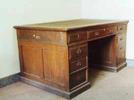 北野政次使用過的辦公桌、椅子、書架:北野政次曾用名北野政藏,日本人。日本東京帝國大學(xué)畢業(yè),獲醫(yī)學(xué)博士。這一套桌、椅及書架是當(dāng)時(shí)北野政次在“滿洲醫(yī)科大學(xué)”時(shí)使用的“辦公用品”,是由中國醫(yī)科大學(xué)于1997年捐贈給該館的。