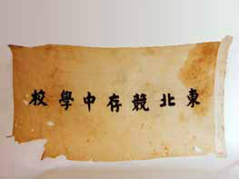 東北競存中學(xué)校旗:這面校旗,雖然多處損破,但這面旗幟是人民宣傳和進(jìn)行抗日救亡活動(dòng)的光輝旗幟。