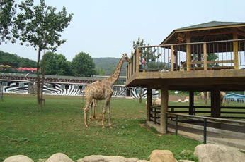野生放養(yǎng)園的動(dòng)物全在外邊放養(yǎng),游客可以乘坐觀光電平車游覽,或者步行觀賞。依次經(jīng)過(guò)的是草食動(dòng)物園、熊園、虎園、獅園等園區(qū)。還有那些在林間的水潭邊跳躍的小鹿,悠閑地散步的長(zhǎng)頸鹿。非洲野狗,又如三色犬,體形很小,只有一米高,但卻兇猛異常,可以捕食羚羊、斑馬等哺乳動(dòng)物,買只獵物投食,瘋狂的野狗爭(zhēng)相奪食,異常血腥。(建議步行游覽即可,時(shí)間約50分鐘)亞洲食草動(dòng)物區(qū)。有牦牛、駱駝、矮馬、白唇鹿、馬鹿、田鹿、梅花鹿、羊駝、犀牛等眾多動(dòng)物,它們和睦相處、互不侵犯各怡然自得。游客可以拿點(diǎn)青草樹(shù)葉之類的食物,和它們近距離相處喂食。