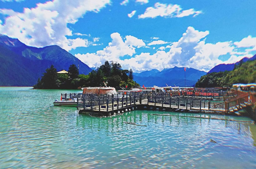 - 特色:巴松措湖中央的小島,島上有一座建于唐代的錯(cuò)宗工巴寺。