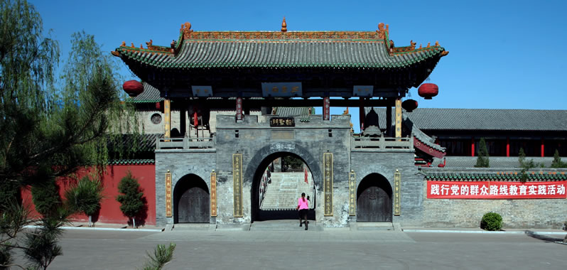 孝義市三皇廟,亦稱圣祖廟,位于孝義市城西賈家莊村中,F(xiàn)存建筑最早為元代遺構(gòu)。元、明、清和民國(guó)年間曾不同程度進(jìn)行擴(kuò)建和修葺。該廟南北寬59米,東西長(zhǎng)84米,兩進(jìn)院布局。遒勁有力的“三皇廟”鑲嵌在山門的門額上。中軸線建有樂樓、三皇殿。頭院空闊,北角設(shè)磚券山門,二進(jìn)院北角設(shè)掖門為一、二進(jìn)院出入通道。兩進(jìn)院落自然地平落差較大,故掖門前設(shè)踏步緩解。三皇殿坐西向東,面闊三間,進(jìn)深四架椽,梁架為三椽,前壓搭牽用三柱,單檐硬山頂前廊式。三皇殿內(nèi)仍保存元代結(jié)構(gòu)。三皇殿門上方掛有匾額,書寫“三皇廟”為明萬歷十年十月四川按察使梁明翰贈(zèng)。殿內(nèi)正面供奉太昊伏羲、神農(nóng)炎帝、軒轅黃帝,兩側(cè)配祀古代十大名醫(yī),山墻繪有“行醫(yī)圖”壁畫,壁畫色彩明艷,線條清晰。大殿對(duì)面樂樓坐東向西,面闊三間,進(jìn)深五架椽,單檐卷棚頂。前后臺(tái)隔架和頂棚全為彩畫木式組成,臺(tái)口四周有木、磚、石雕刻清代遺構(gòu)。臺(tái)口上方高懸民國(guó)八年所刻匾額一塊,上書“海市蜃樓”,由晚清書法名家秦龍光所書。樂樓藻井彩繪梁山好漢一百零八將,神彩各異,栩栩如生。前后臺(tái)間,鑲嵌大塊玻璃為整座戲臺(tái)增光添彩,時(shí)有“玻璃戲臺(tái)”的美譽(yù),曾形成邑內(nèi)外“為看戲臺(tái)而看戲”的時(shí)尚。