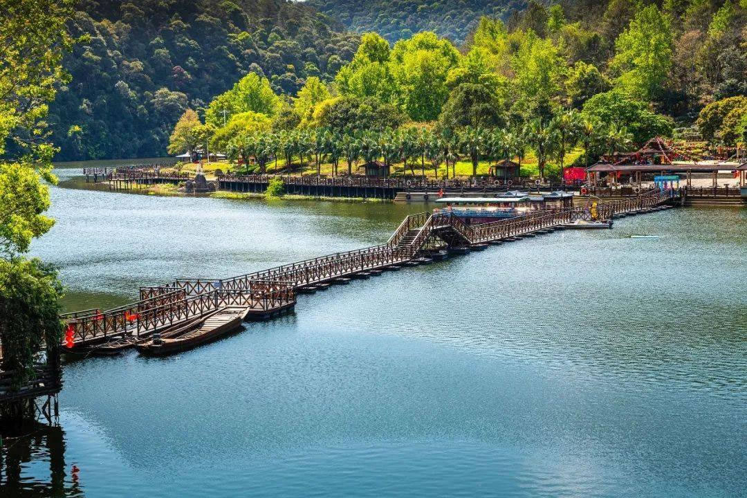 - 7公里長的清澈溪流,兩岸山勢險峻,古木參天,可乘船游覽,感受“舟行碧波上,人在畫中游”的意境。