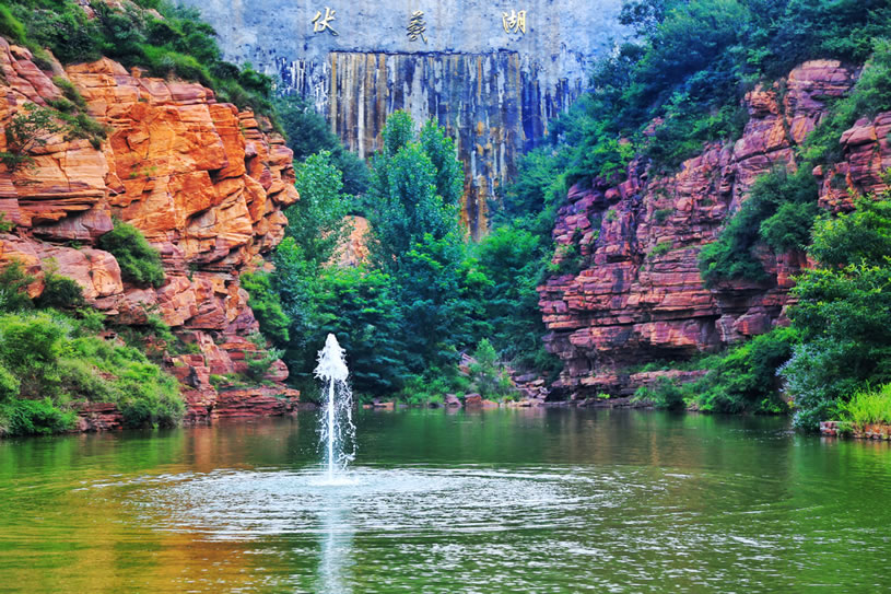 伏羲大峽谷位于河南省鄭州新密市西北20公里的伏羲山旅游區(qū)內,是一條以典型紅巖嶂谷群地質地貌景觀為主的峽谷景區(qū)。伏羲山屬于嵩山山脈向東延伸部分,主峰五指嶺1108.5米,橫跨伏羲山全境。景區(qū)氣候溫潤,四季分明,年均溫11.6℃,比市區(qū)低2.7℃;景區(qū)植被茂密、物種繁多、綠樹掩映、花木扶疏,有千年以上的古樹名木數(shù)十棵,其中具有“活植物化石”之稱的古亢樹,是伏羲山特有的樹種。景區(qū)終年流水不斷,谷底飛瀑、跌水、深潭、平湖,清幽涼爽,姿態(tài)萬千,風景秀美,巨大的巖石像被打磨過似的,平坦如鏡,潔凈光滑,游客可以在這里享受世間少有的“巖石浴”;峽谷兩岸巖石兀立,巖壁上天然石梯懸于空中,形形色色的人物以及動物的形象惟妙惟肖?傄(guī)劃面積共5.3平方公里,以伏羲文化和紅石大峽谷為主要特色,分為上下兩部分:上部以臥龍臺、文化隧道、望鄉(xiāng)臺、八卦臺、萬年栗、栗仙神祠、女媧補天處、神龜折足、五色石等景點為主,全面反映伏羲文化的形成、發(fā)展、傳播以及對后世的影響;下部以黃龍?zhí)、黃龍廟、簸萁潭、立龍鍋潭、貫云瀑(龍影瀑)、八分潭、烏龜拜壽、九龍?zhí)、圖騰柱、馬蹄溝、沐云梯、等景點為主,深切感受峽谷風光,體驗自然鬼斧神工。