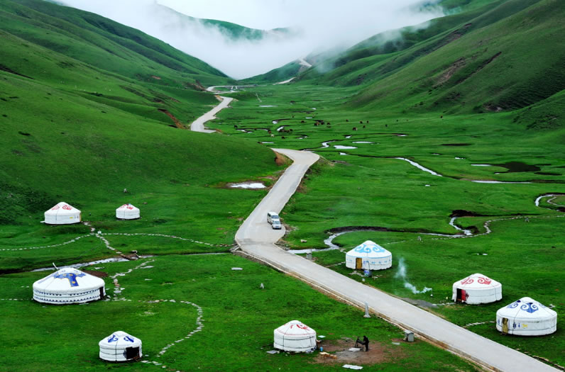 - 特色:6月野花盛開(kāi),紫色龍膽、黃色毛茛與羊群共繪畫(huà)卷。