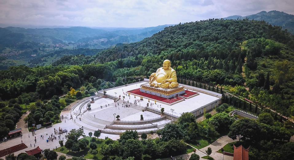 - 特色:世界最大笑佛,高19.99米,取唐末布袋和尚形象,象征跨世紀(jì)和平統(tǒng)一;鶅(nèi)藏明代《破山禪師語錄》殘卷,2025年新增全息投影“佛光普照”奇觀。