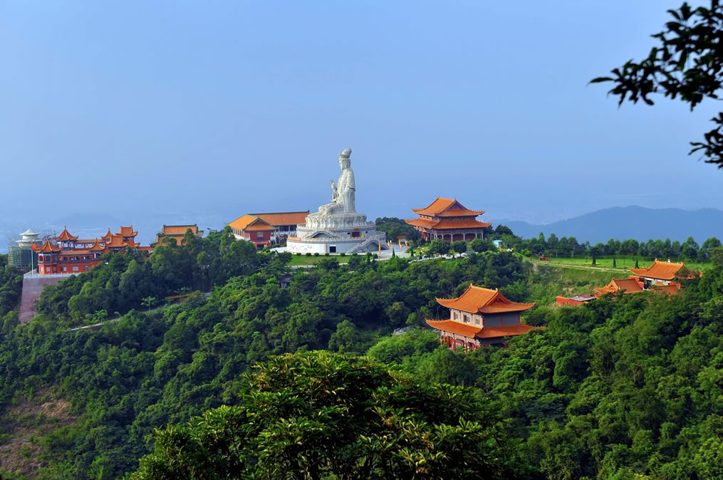 廣東觀音山國家森林公園,位于廣東省東莞市樟木頭鎮(zhèn)筆架山路190號觀音山,地處珠江三角洲東南部,東莞市東部,樟木頭鎮(zhèn)中心邊緣,距鎮(zhèn)中心1.5千米,距離東莞市區(qū)大約40千米,總面積657.18公頃。廣東觀音山國家森林公園最高點(diǎn)為耀佛嶺,海拔566米,觀音山海拔488米。屬丘陵山地地貌。所在地區(qū)樟木頭鎮(zhèn)屬南亞熱帶海洋性季風(fēng)氣候區(qū)。森林覆蓋率達(dá)92%以上,常見植物種類有73科199種。其中屬國家保護(hù)的動(dòng)植物22種,瀕危植物包括粘木、白桂木、蘇鐵蕨、土蠶霜、金茶花、野茶樹和野生龍眼等。有獸類、飛鳥類、甲殼類、昆蟲類等300多種動(dòng)物。廣東觀音山國家森林公園內(nèi)建成了以正門樓、觀音廣場、觀世音菩薩法像、仙宮嶺、普渡溪、感恩湖、回音壁、怡心亭、慈云閣、先人石壘、古樹博物館、國際會展中心、仙泉游泳館等20余處景點(diǎn);內(nèi)設(shè)6.8千米的吉祥路(佛光路),既可觀景也可休閑健身;還有飛天威亞、龍鳳天梯、冰雪樂園、山地越野車等娛樂項(xiàng)目,是親子家庭放松休閑、寓教于樂的自然課堂。