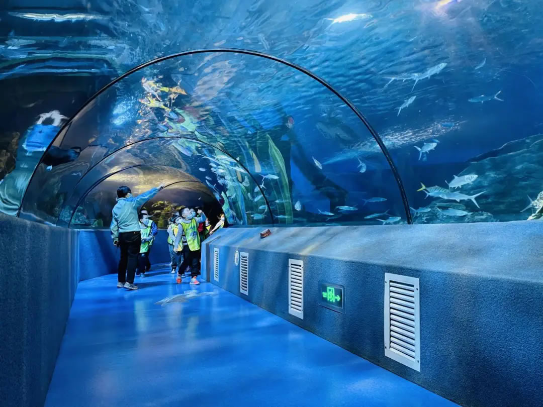 - 海底隧道:80米長、270度亞克力玻璃環(huán)繞,鯊魚、鰩魚從頭頂掠過,搭配丁達爾效應(yīng)光影,形成震撼視覺體驗。