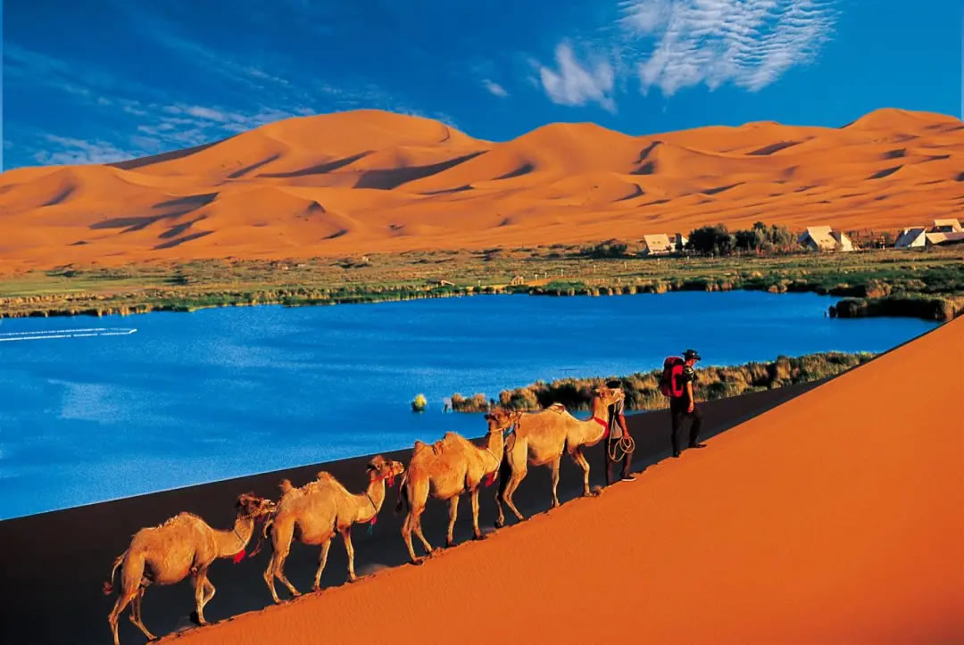 面積約4.43萬平方千米,是中國第三大沙漠。流動沙丘占全部沙漠面積的83%。中部有高大沙山,一般高200-300m,最高的達500m。高大沙山間的低地有144個內(nèi)陸小湖。巴丹吉林沙漠有“中國最美的沙漠”的美稱。是阿拉善世界沙漠地質(zhì)公園的核心區(qū)域。