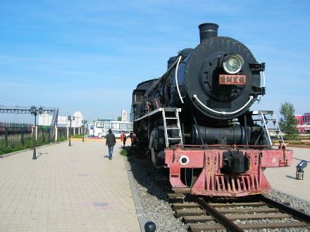 建成于2004年6月。陳列在這里的是一臺1940年日本制造的“亞西亞”型蒸汽機車,機車下面的鐵軌是1925年蘇聯(lián)制造的43鐵軌,這臺機車在中華大地上奔馳了半個多世紀,演繹了生命里程的“三部曲”,留下了許許多多鮮為人知的故事。建國初毛主席就是乘座這臺機車牽引的火車出訪蘇聯(lián)的。機車號是 “1861”,“18”代表的是滿洲里到俄羅斯后貝加爾斯克的距離,即18里!61”是代表毛澤東在滿洲里期間,曾對駕駛這輛火車頭的司機長說過六句話:一定要與蘇聯(lián)同志搞好友鄰關系,一定要注重少數(shù)民族地區(qū)的相互團結,一定要保障軍用列車的安全,一定要多學文化,一定要克服天氣寒冷帶來的困難,一定要注意身體。毛主席回國后,向全國人民發(fā)出了建設社會主義新中國的偉大號召。從1950年到1965年,這臺機車歡快地馳騁在祖國建設的鋼鐵運輸線上,立下了不可磨滅的功勛。因此,滿洲里人民又命名它為“滿洲里號”。
