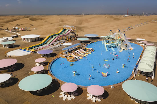 在沙漠中各種深淺的大型泳池里,以各種泳姿釋放自己——在沙丘起伏無際的沙漠里——在沙漠中屬于自己的水的世界里……累了,就躺在清爽的沙灘床上,美美地過上幾個小時,同時可以與同行的人邊吃邊喝邊聊哦,別睡著了,演出一定會有的,悅沙島每天會有十多場不同的演出或比賽,是藝術(shù)的、是體育的……