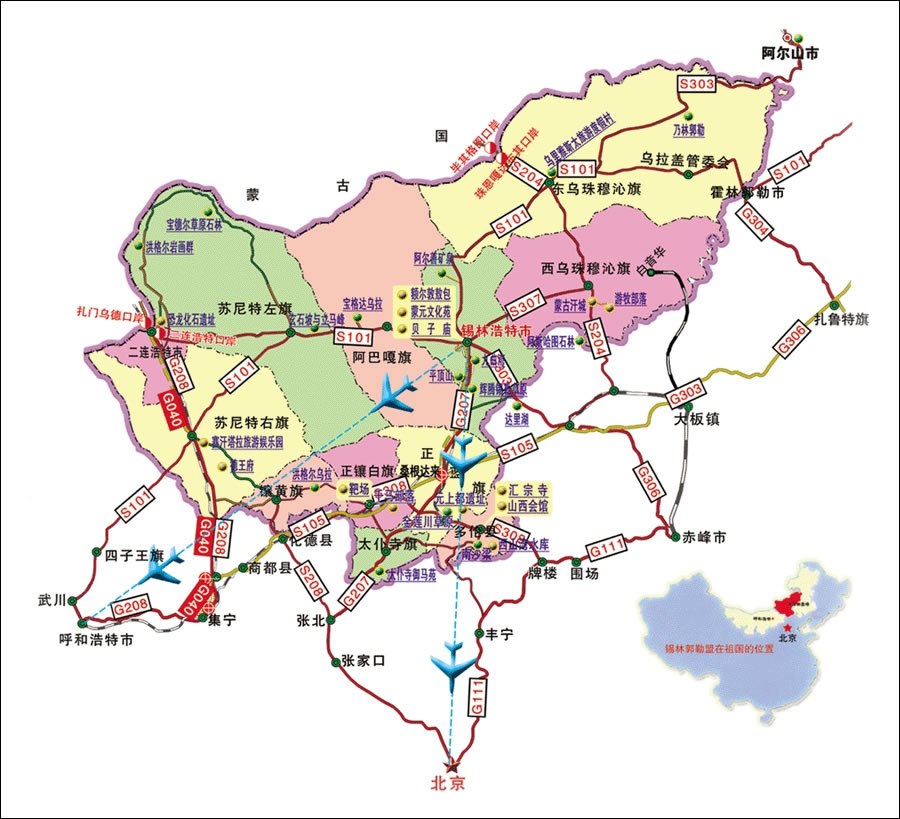 4 個小時左右可進(jìn)入錫林郭勒草原, 7 個小時左右可到達(dá)錫林浩特市,北京至錫林浩特航班僅用 40 分鐘即可到達(dá),交通十分便利。盟內(nèi)通信便捷暢通,并已建成盟、旗(縣)、蘇木(鄉(xiāng))、嘎查(村)四級農(nóng)村牧區(qū)信息服務(wù)網(wǎng)絡(luò),其中