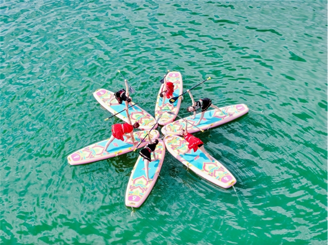 當古老的瑜伽遇上時尚的槳板,當柔美的倒影撫摸太鶴湖鱗鱗的水面,太鶴湖上便盛開了一朵朵絢麗的花朵。一片湖面便有一塊槳板,一塊槳板便是一片風景!槳板瑜伽展示的不僅是時尚之美,更是健康之美!