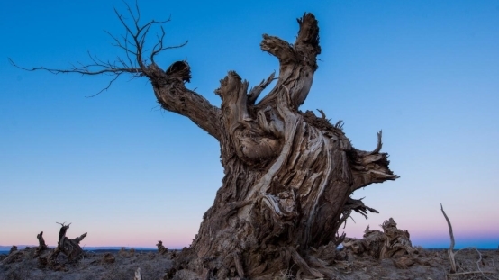 九千年胡楊,這里胡楊樹形也同樣奇特,有的胡楊猶如一頭大象,象鼻朝下吸水,象背馱著元寶自遠(yuǎn)處而來(lái),為游客帶來(lái)吉祥和財(cái)富;有的胡楊春萌新芽,夏葉婆娑,秋金滿地,冬蘊(yùn)傲骨;有的胡楊就像古代的帝王莊嚴(yán)的祭祀著天地的生靈,祈求一方祥和,護(hù)佑一方安寧。