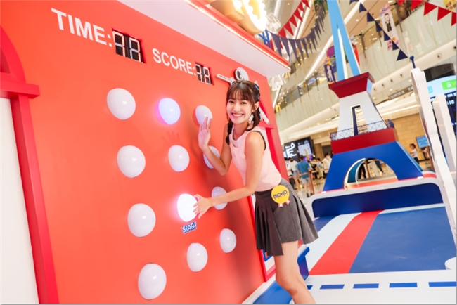 4.7米高的紅磨坊那極具標(biāo)志性的紅色配上璀璨金色亮燈MOKO字樣,非常的搶眼。紅磨坊前設(shè)置擊劍場,由“無敵劍神”及“世一劍后”坐陣,邀請游客參與這場反應(yīng)與速度的挑戰(zhàn),游戲限時30秒,隨著墻上拍拍燈隨機亮起,每按下一盞亮燈即可得分,讓游客在充滿歡樂的挑戰(zhàn)中,看看自己是否有成為新一代劍神劍后的實力。