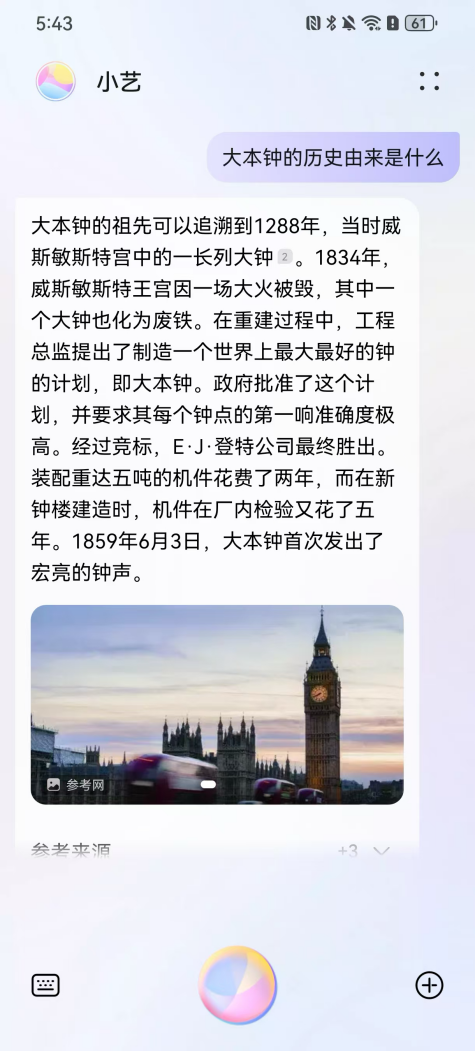 旅行途中遇到任何問題,都可以向華為手機(jī)“問一問”。借助強(qiáng)大的AI技術(shù)底座,華為智慧助手小藝能夠理解你的需求,并提供精準(zhǔn)的答案和建議。例如,當(dāng)你漫步在倫敦街頭,被雄偉的大本鐘所震撼,卻對(duì)它的歷史一無所知時(shí),只需對(duì)著手機(jī)問小藝:“大本鐘的歷史由來是什么?”,小藝就能為你娓娓道來它的前世今生,讓你對(duì)這座城市的歷史文化有更深入的了解。 或者,當(dāng)你站在巴黎圣母院前,想要了解這座哥特式建筑的藝術(shù)風(fēng)格,也可以向小藝提問,它會(huì)為你詳細(xì)介紹圣母院的建筑特點(diǎn)和歷史意義。