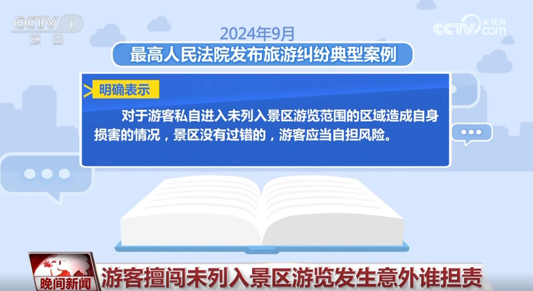 今年9月,最高人民法院發(fā)布旅游糾紛典型案例,明確表示:對于游客私自進入未列入景區(qū)游覽范圍的區(qū)域造成自身損害的情況,景區(qū)沒有過錯的,游客應(yīng)當自擔風險。