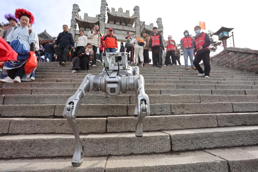 圖為正在泰山進行測試的機器狗。新華社發(fā)