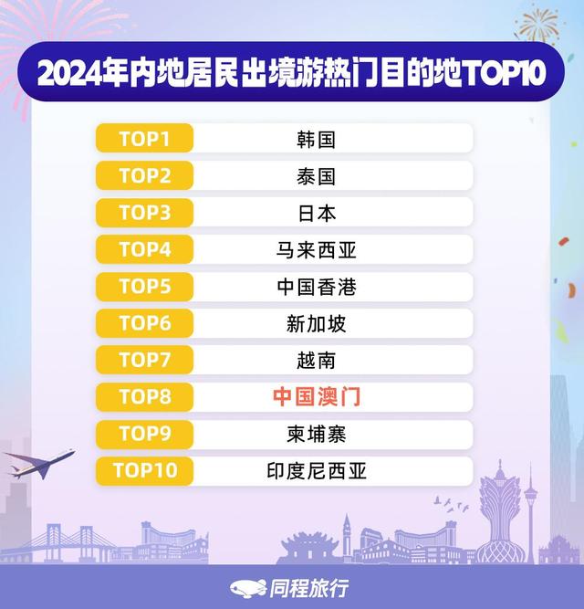 澳門(mén)穩(wěn)居內(nèi)地居民出境游前十大目的地