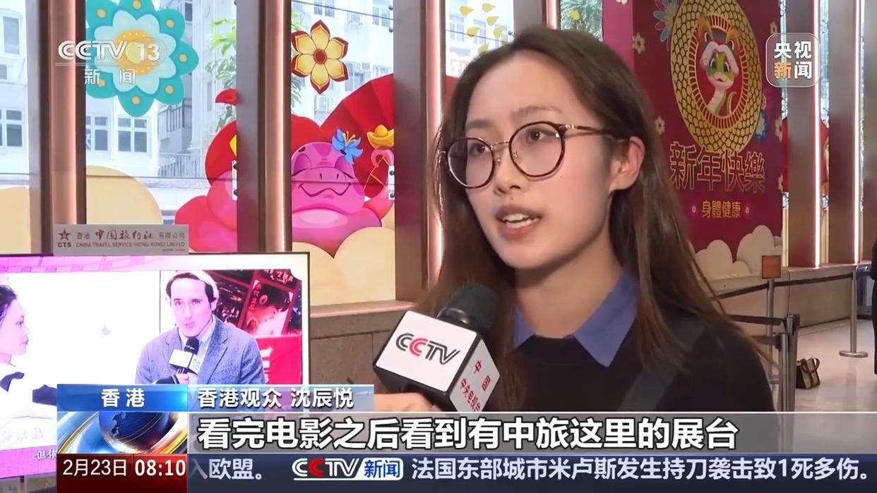 香港觀眾沈辰悅:看完電影之后看到有中旅這里的展臺,然后我們也來了解一下,希望之后能夠去到內(nèi)地旅游。