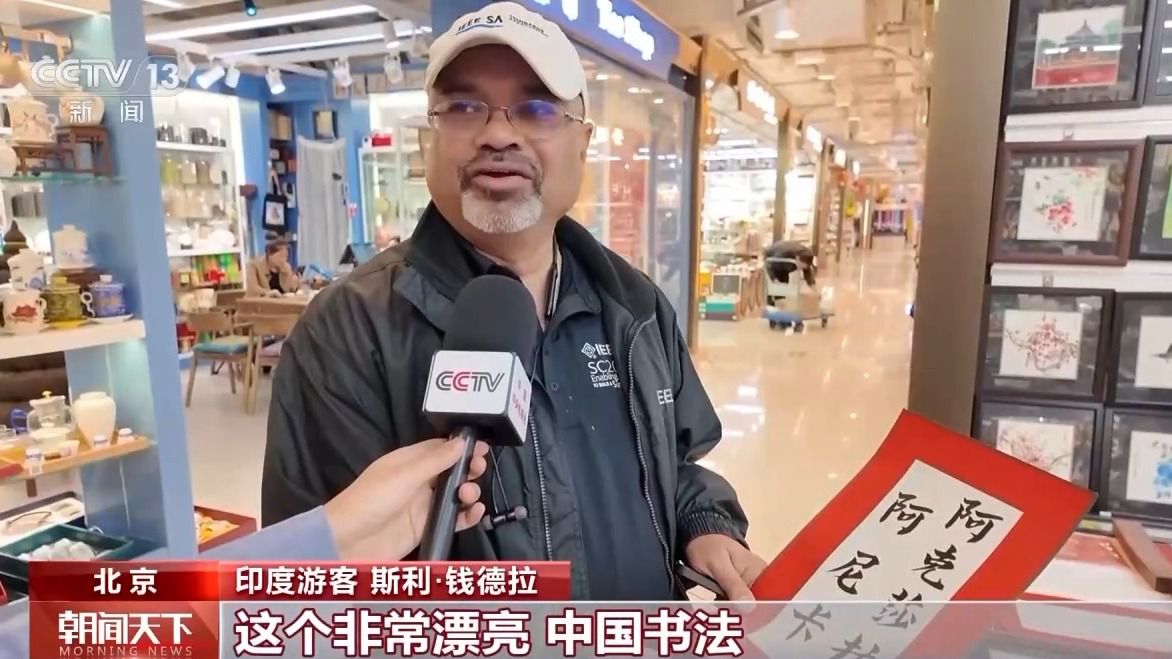 印度游客 斯利·錢德拉:中國電影很流行,我每到一個地方,都會用當?shù)匚淖謱懴屡畠旱拿帧N蚁矚g文化,不同地域的當?shù)匚幕@個非常漂亮,中國書法。
