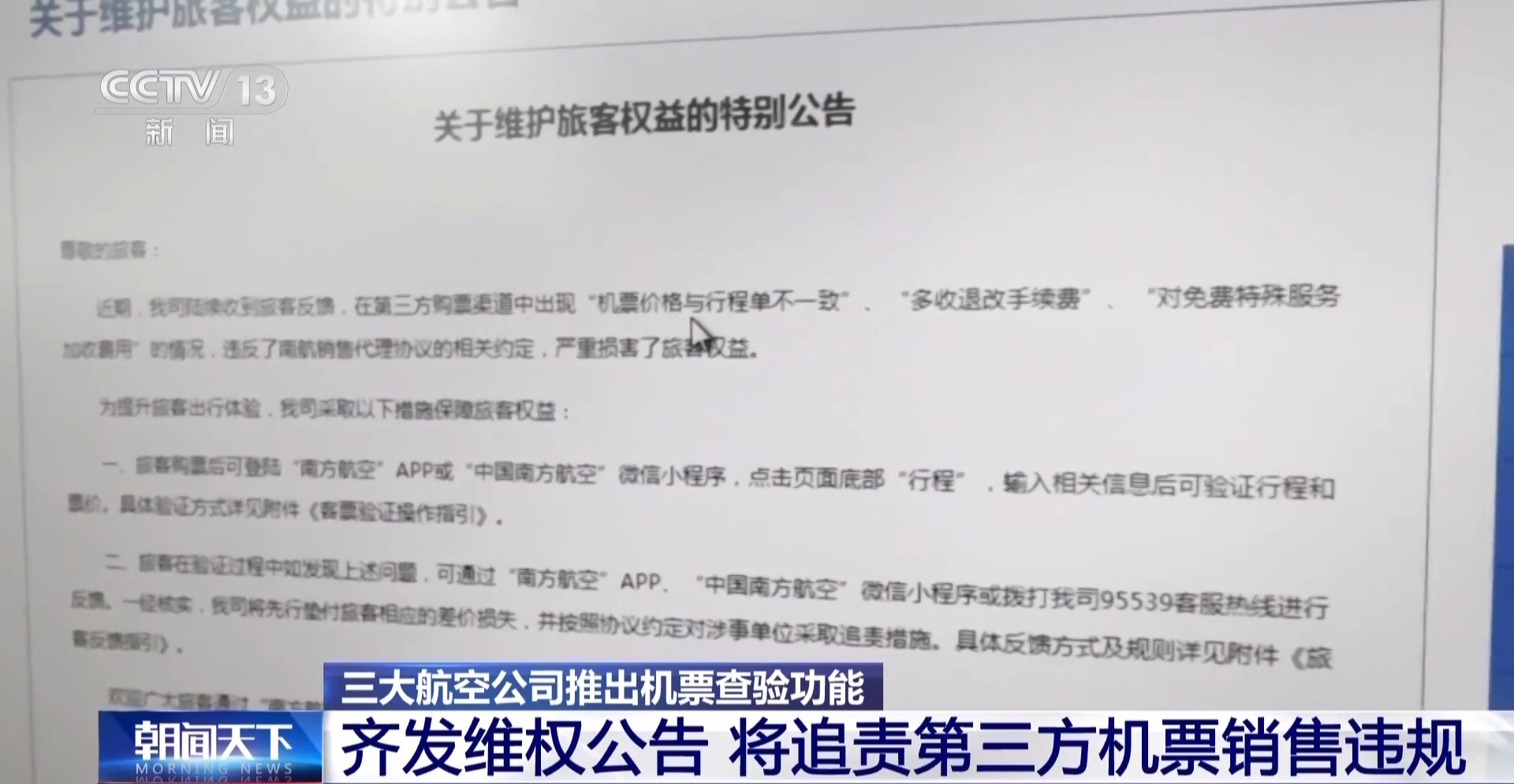 中國(guó)法學(xué)會(huì)消費(fèi)者權(quán)益保護(hù)法研究會(huì)副秘書長(zhǎng) 陳音江:我覺得對(duì)規(guī)范票務(wù)市場(chǎng)、倒逼機(jī)票代理和平臺(tái)誠(chéng)信守法經(jīng)營(yíng)也具有積極的作用。并且能夠從整體上來(lái)促進(jìn)航司服務(wù)的提升,也能對(duì)切實(shí)維護(hù)消費(fèi)者合法權(quán)益起到一個(gè)重要的保障作用。(來(lái)源:央視新聞)