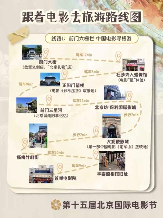 在今年的北影節(jié)舉辦期間,除了沉浸式刷片,還能“跟著電影去旅游”。北京市文旅局推出了“寶藏打卡攻略”,12條寶藏電影路線帶你去春游!