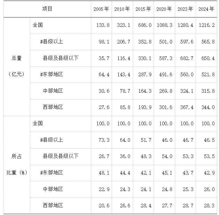 全國文化和旅游事業(yè)費(fèi)中,縣級以上文化和旅游事業(yè)費(fèi)565.8億元,占46.5%,比重比上年下降了0.1個百分點(diǎn);縣級及縣級以下文化和旅游事業(yè)費(fèi)650.4億元,占53.5%,比重比上年提升了0.1個百分點(diǎn)。東部地區(qū)文化和旅游事業(yè)費(fèi)521.8億元,占42.9%,比重比上年下降了0.8個百分點(diǎn)。中部地區(qū)文化和旅游事業(yè)費(fèi)315.8億元,占26%,比重比上年提高了0.7個百分點(diǎn)。西部地區(qū)文化和旅游事業(yè)費(fèi)344億元,占28.3%,比重比上年下降了0.4個百分點(diǎn)。