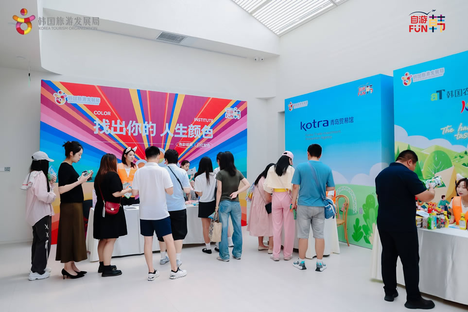 在K-文化體驗(yàn)環(huán)節(jié),韓國旅游發(fā)展局精心準(zhǔn)備了色彩測(cè)試、人生四格拍照、魷魚游戲、K-POP樂隊(duì)演出等年輕人喜愛的體驗(yàn)內(nèi)容。京畿道旅游發(fā)展局、KOTRA青島貿(mào)易館、韓國水協(xié)中央會(huì)、aT韓國農(nóng)水產(chǎn)食品流通公社、新羅免稅店、韓游網(wǎng)等共同參加機(jī)構(gòu)也準(zhǔn)備了K-FOOD、K-BEAUTY、韓流旅游等特色體驗(yàn)內(nèi)容。