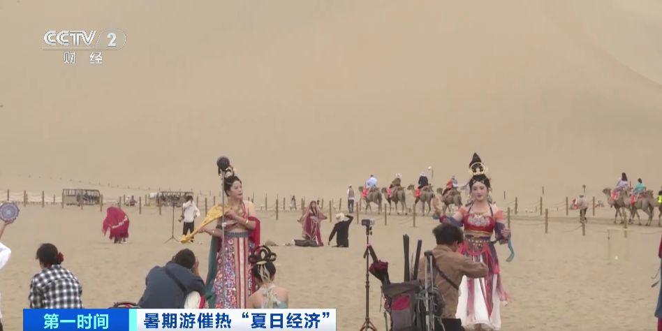 暑假到了,甘肅敦煌旅游持續(xù)升溫。鳴沙山月牙泉景區(qū)以其獨特的大漠風光,吸引各地游客前來打卡,大漠旅拍服務受到青睞。