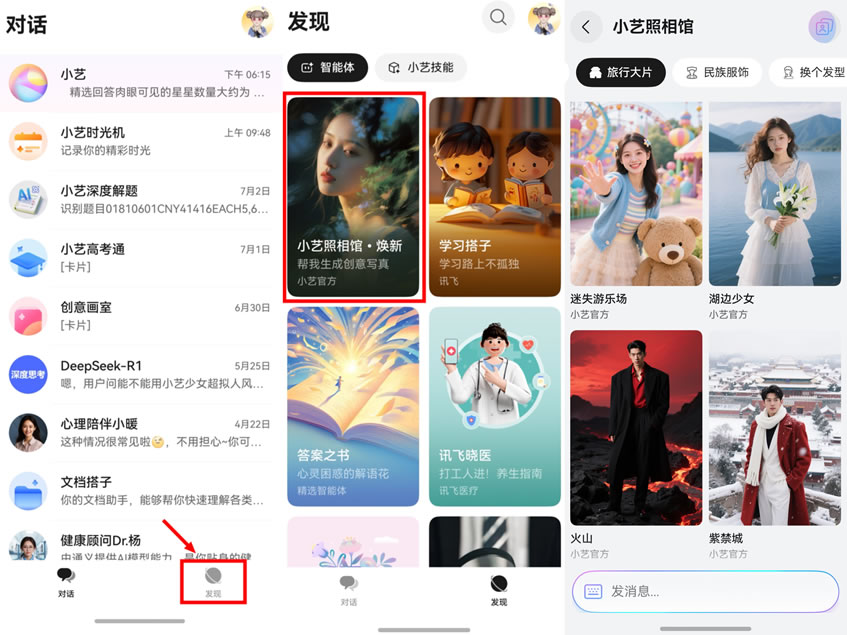 如果沒拍到滿意的照片也沒關(guān)系,在小藝照相館找回遺失的美好。進(jìn)入小藝App的發(fā)現(xiàn)頁,在智能體市場找到小藝照相館Agent,挑選自己喜歡的模板并上傳照片,即刻生成藝術(shù)風(fēng)格類寫真,實(shí)現(xiàn)像素級面部特征遷移,效果堪比專業(yè)攝影棚精修大片。