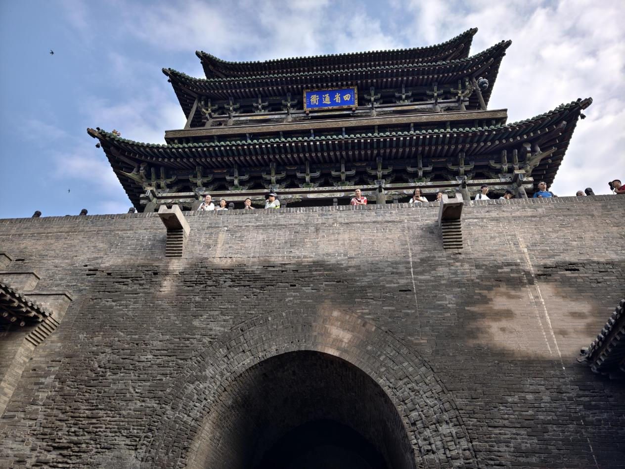 登上古城墻遠(yuǎn)眺,6000多米長(zhǎng)的城墻巍峨挺拔。據(jù)工作人員介紹,現(xiàn)在我們看到的城墻基本上保留了明代的建筑形制,外墻包磚內(nèi)墻夯土。古城內(nèi)以南大街為軸線,四大街、八小巷、七十二條蚰蜒巷縱橫交錯(cuò),民居、客棧、票號(hào)、鏢局等呈東西對(duì)稱分布。青磚路面以及上面深深的古車轍印,是古城“四省通衢”的重要見(jiàn)證。