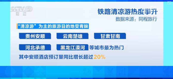 旅游平臺(tái)數(shù)據(jù)顯示,“清涼游”為主的旅游目的地受青睞。貴州安順、云南楚雄、甘肅甘南、河北承德、黑龍江漠河等城市最為熱門,其中安順酒店預(yù)訂量同比增長超過20%。