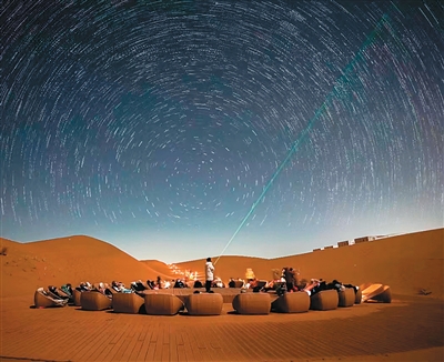 游客在沙坡頭景區(qū)觀星。