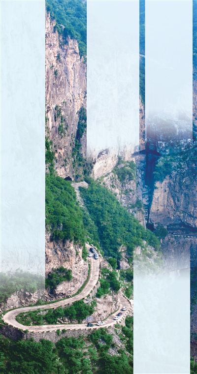 錫崖溝掛壁公路呈“之”字形走勢(shì),全長(zhǎng)7.5公里,高差500米,彎道接著一個(gè)彎道、懸崖連著一個(gè)懸崖。