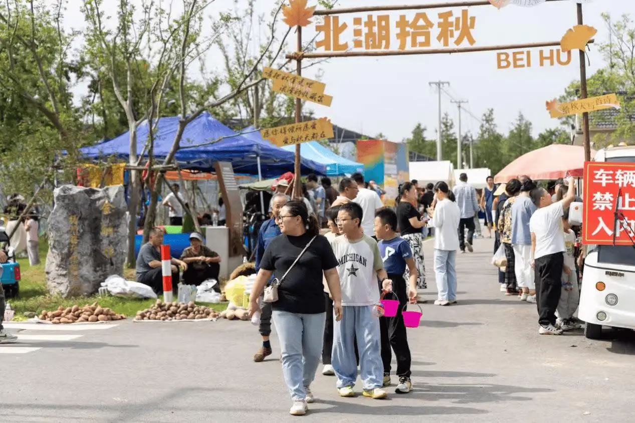 “北湖拾秋”集市現(xiàn)場(chǎng)(邗江區(qū)融媒體中心供圖)