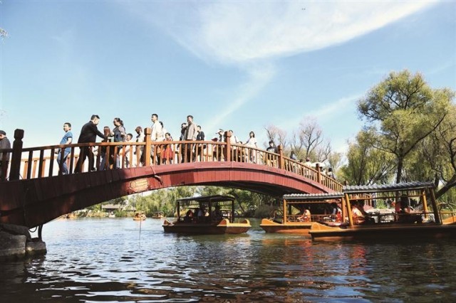 來(lái)自全國(guó)各地的游客穿梭在紅楓古建間,讓這座皇家園林在金秋時(shí)節(jié)煥發(fā)出十足活力。今年國(guó)慶、中秋雙節(jié)齊至,當(dāng)然不能少了“賞月”環(huán)節(jié),我市不少景區(qū)以“月”為主題,開(kāi)啟“夜游模式”。