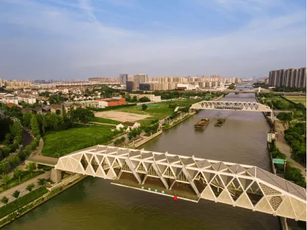 在滸墅關(guān),順應(yīng)民生所需,以文脈傳承、文化賦能滿足人民群眾對(duì)美好生活的向往,“紅房子”并非個(gè)例。就在距“紅房子”咫尺之遙的大運(yùn)河上,造型別具一格的滸關(guān)南橋、北橋吸人眼球。橋身,大量運(yùn)用三角形與菱形元素,充分彰顯現(xiàn)代結(jié)構(gòu)美學(xué);橋中,幾座“尖頂閣樓”突起,是特意營造的觀水場所;橋下,運(yùn)河汩汩流淌,一艘艘貨輪推開波紋向前駛?cè)ァ?/p>