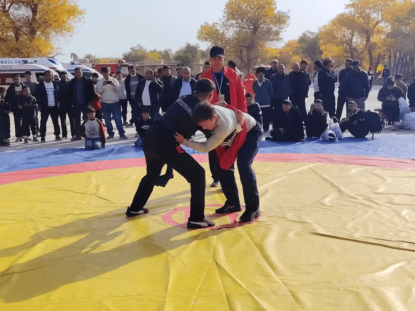 活動(dòng)當(dāng)天,且力西比賽現(xiàn)場(chǎng)熱鬧非凡,眾多體育愛好者與游客紛紛圍攏,目光緊盯著賽場(chǎng)。隨著裁判一聲哨響,摔跤手們迅速進(jìn)入狀態(tài),或蹲下身子穩(wěn)步試探,或主動(dòng)出擊鎖住對(duì)方肩膀。抱腰、絆腿、過(guò)肩摔……一系列技巧動(dòng)作如行云流水,剛勁有力又不失靈活。每當(dāng)有精彩對(duì)決上演,場(chǎng)邊便爆發(fā)出陣陣喝彩與加油聲,不少觀眾舉起手機(jī),記錄下這難忘的瞬間。