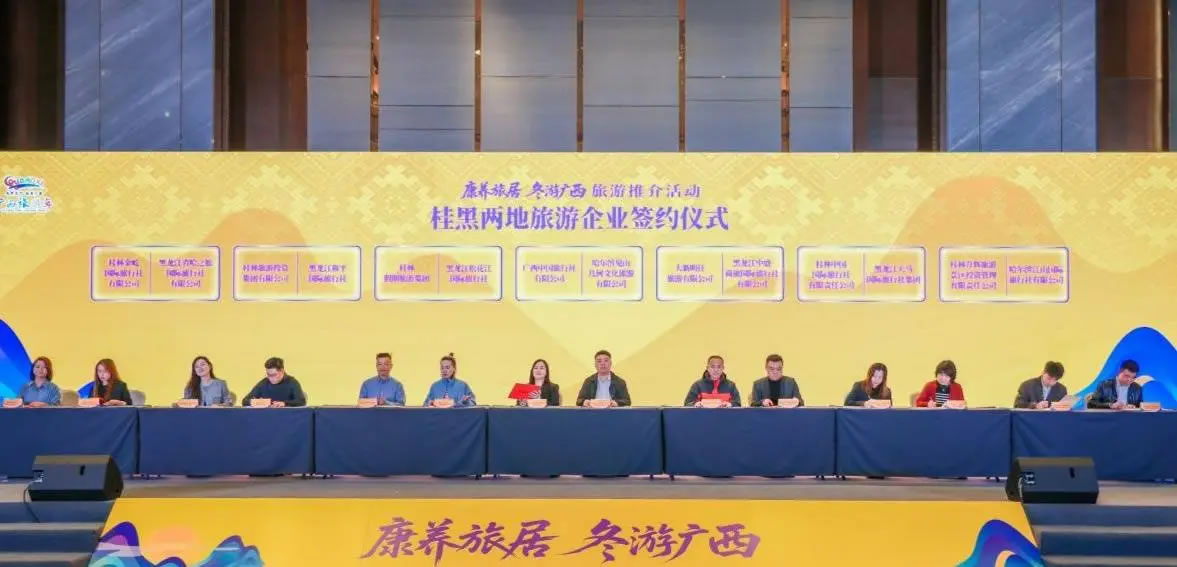 此次推介活動吸引了100多家桂黑兩地旅游企業(yè)進行深度交流,并開展桂黑兩地文旅企業(yè)產(chǎn)品對接會,達成多項合作;顒蝇F(xiàn)場,7家廣西旅游企業(yè)與多家黑龍江省旅游企業(yè)成功簽約。